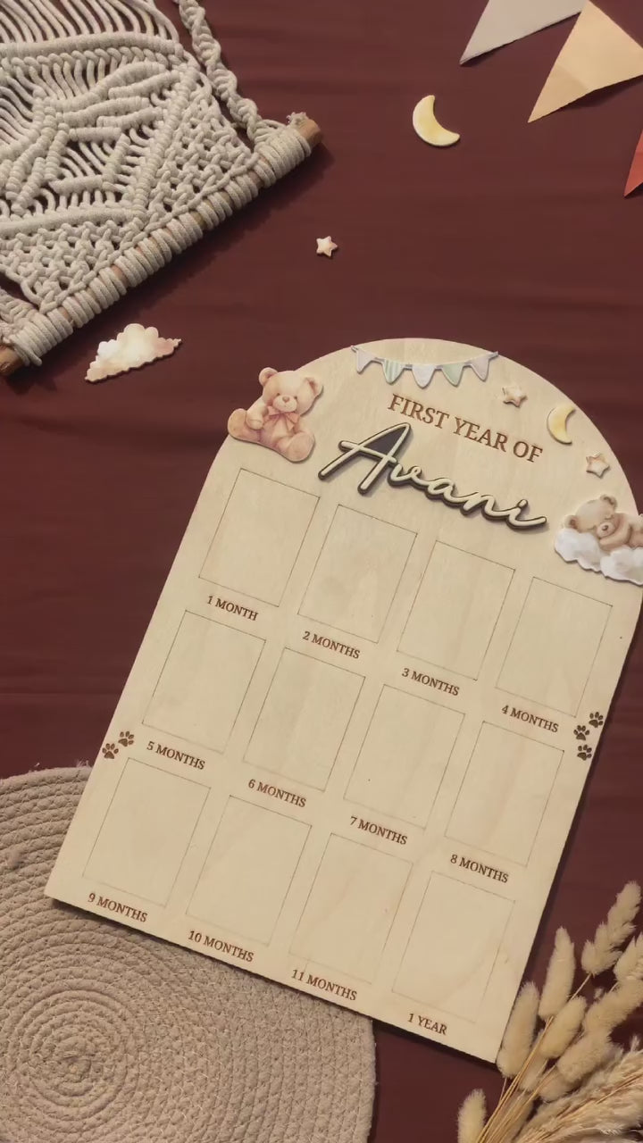 Celebrate every precious moment of your baby’s first year with our beautifully crafted 12-month Wooden Photo Board. Designed with love for parents who want to cherish and display their little one’s growth, this photo board offers a perfect blend of style, quality, and personalization.