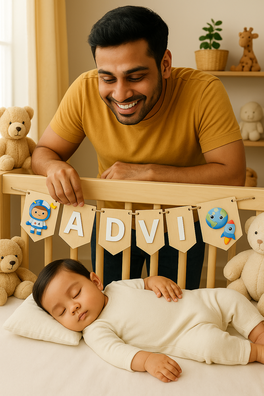 Add a personalized touch to your baby's space with our Custom Wooden Name Bunting! Each letter is beautifully crafted from real wood and accented with premium acrylic elements in charming, kid-friendly themes.