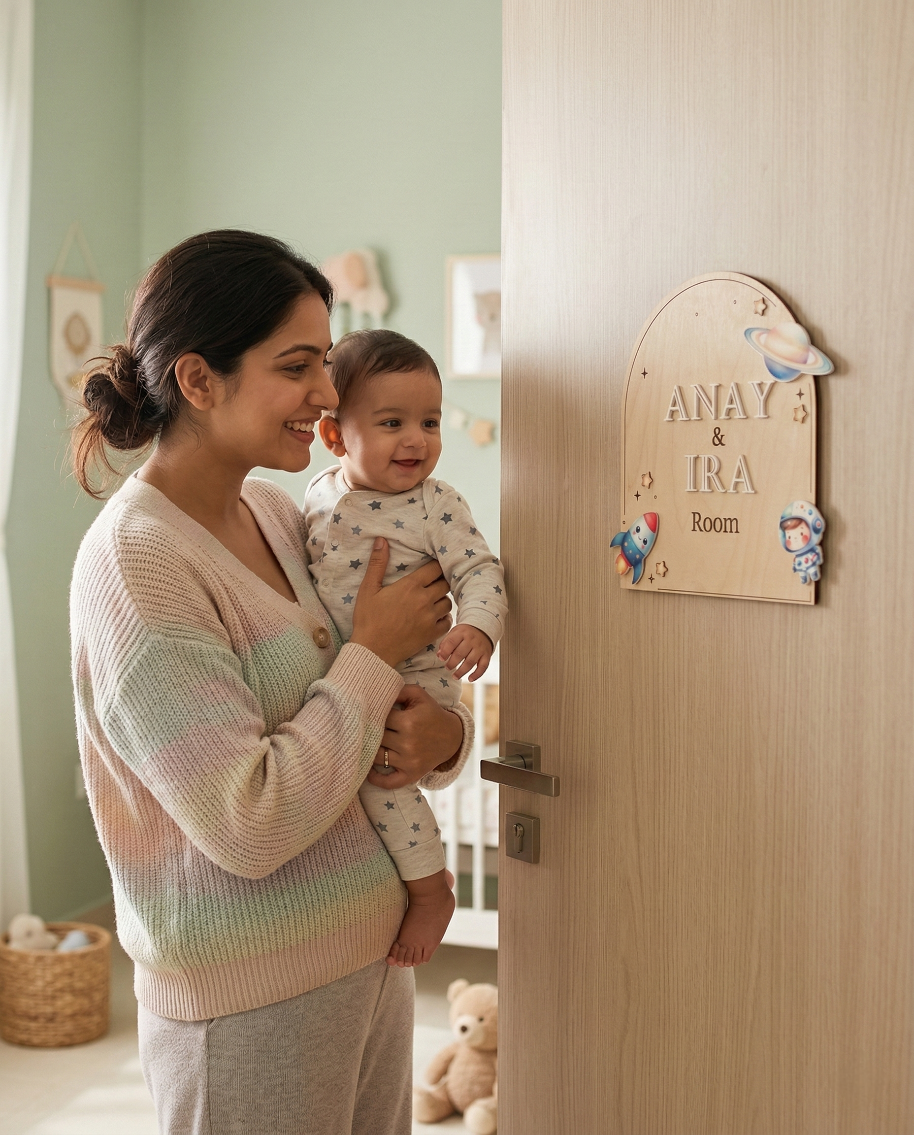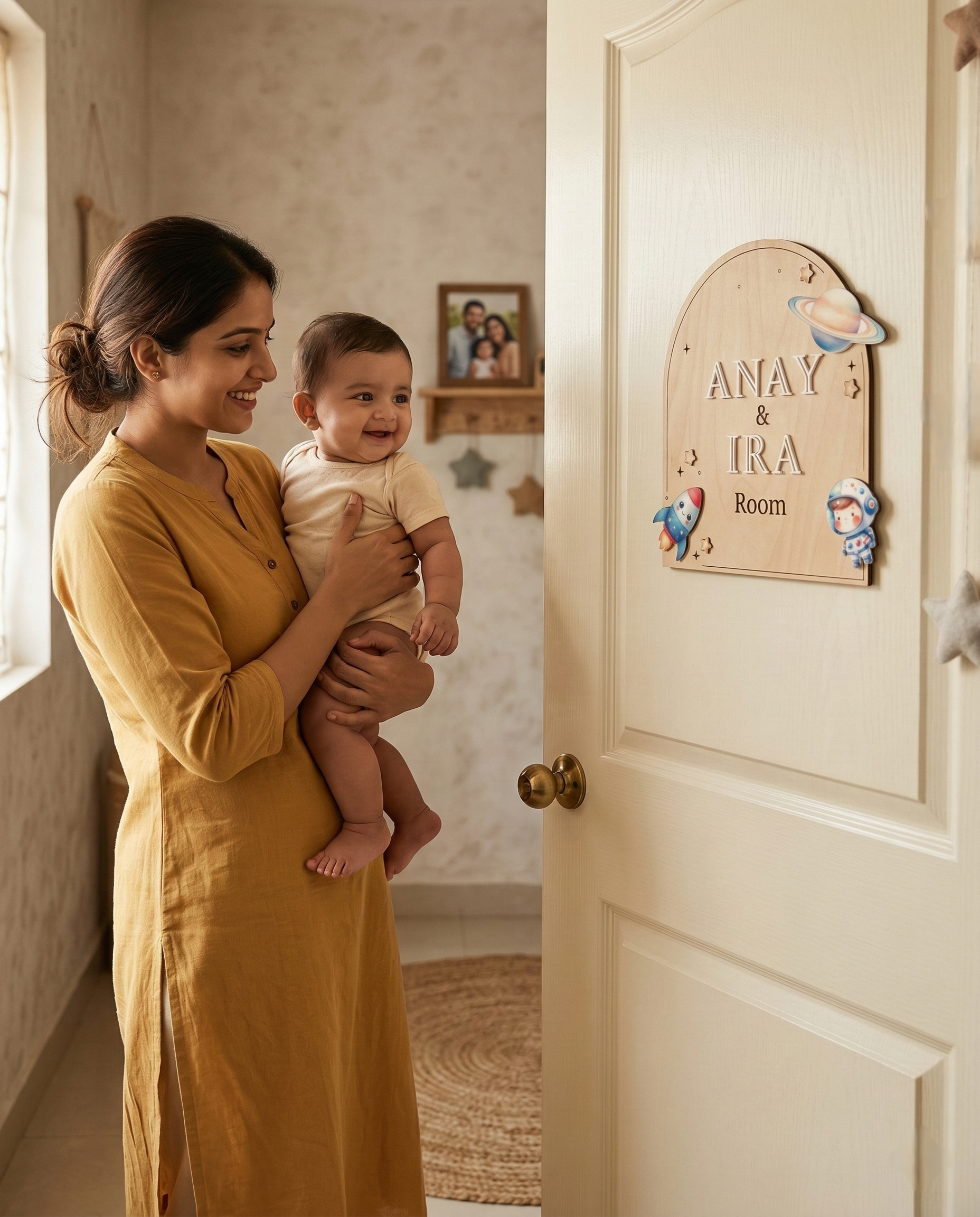 Enhance your space with our 10-inch Wooden Room Name Card, crafted from original wood and finished with premium acrylic elements. Perfect for bedrooms, kids’ rooms, and offices — a stylish touch that adds warmth and personality to any door or wall.